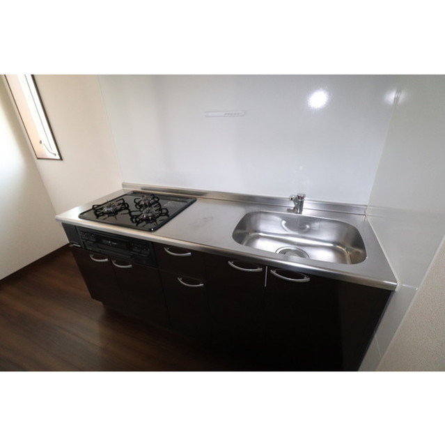 - ②システムキッチン 3口コンロ付き