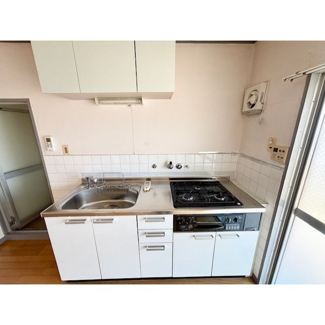 - ②3口ガスコンロのグリル付きのシステムキッチン!LDK10畳で広々とお食事できますよ!