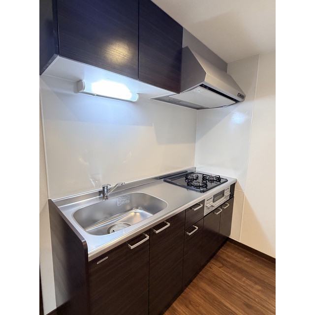 - ②都市ガス システムキッチン 3口コンロ付き